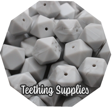 17mm Hexagon Grey Marble Silicone Beads (Pack of 5)